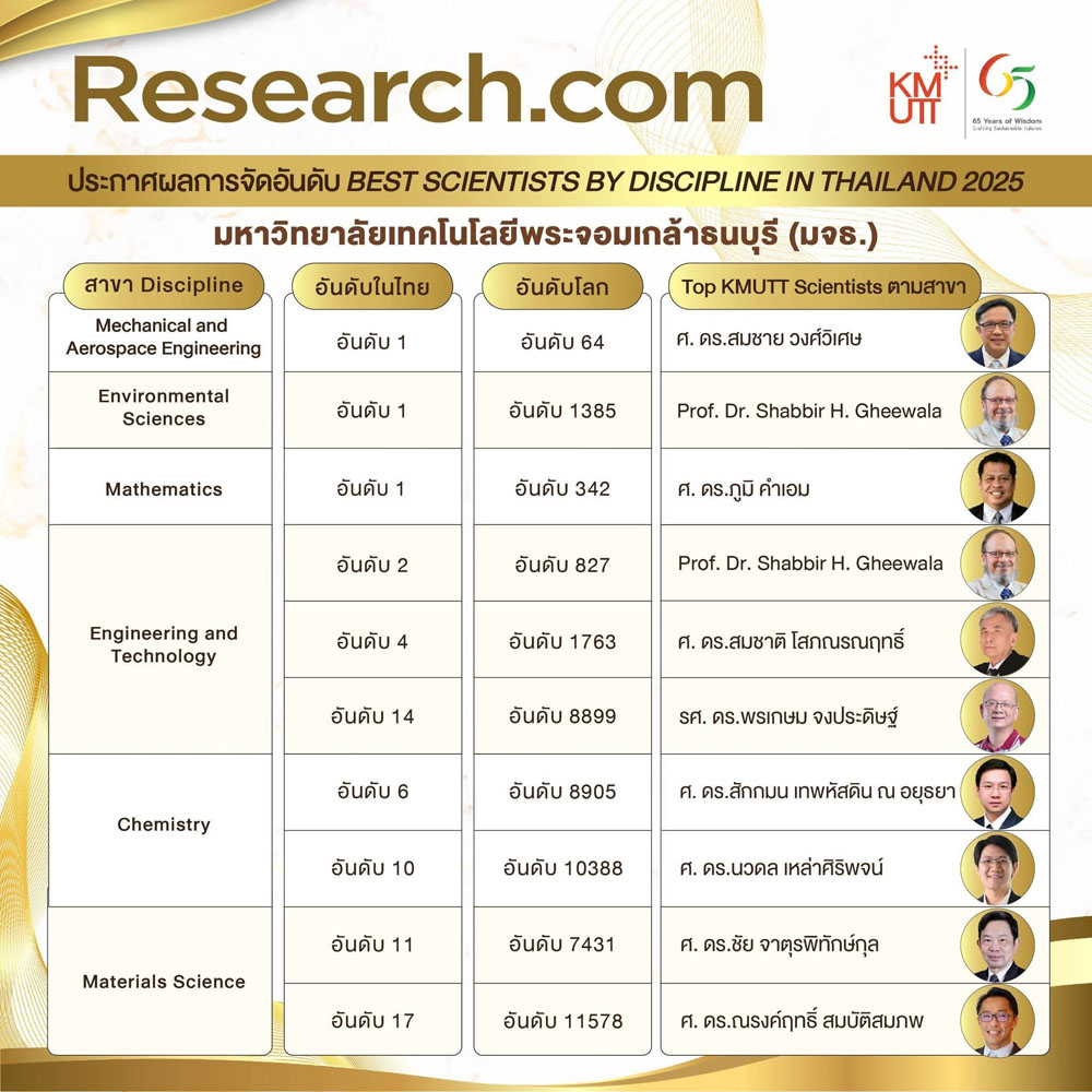 ที่ได้รับการจัดอันดับเป็น Best Scientists by Discipline in Thailand 2025 โดยเว็บไซต์ Research.com
