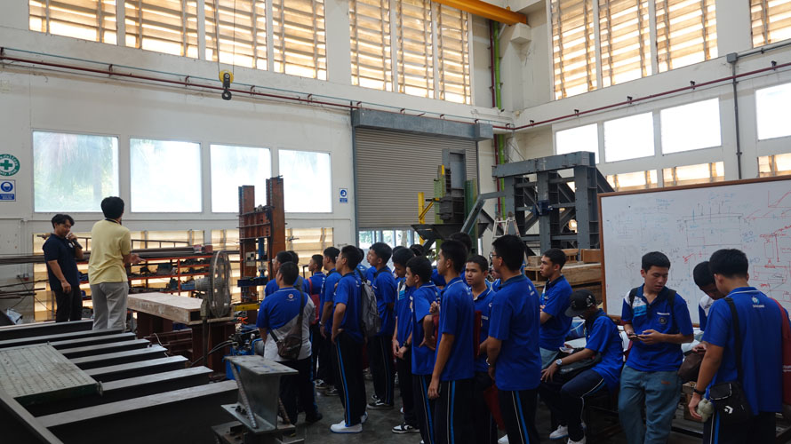 เมื่อวันพฤหัสบดีที่ 24 กรกฎาคม 2568 ภาควิชาวิศวกรรมโยธา คณะวิศวกรรมศาสตร์ มหาวิทยาลัยเทคโนโลยีพระจอมเกล้าธนบุรี ได้ให้การต้อนรับนักเรียนระดับชั้นมัธยมศึกษาปีที่ 4–6 จากโรงเรียนแสงทองวิทยา อำเภอหาดใหญ่ จังหวัดสงขลา จำนวน 143 คน ที่เดินทางมาเยี่ยมชมและศึกษาดูงาน ณ ภาควิชาวิศวกรรมโยธาโดยมี ผู้ช่วยศาสตราจารย์ ดร.เอกชัย อยู่ประเสริฐชัย รองหัวหน้าภาควิชาฯ ด้านยุทธศาสตร์การบริการวิชาการ เป็นผู้ให้การต้อนรับและบรรยายแนะนำข้อมูลเกี่ยวกับภาควิชาฯ ณ ห้องประชุม ชั้น 2 อาคารเรียนรวม 5 คณะวิศวกรรมศาสตร์ พร้อมทั้งแบ่งปันองค์ความรู้ด้านวิศวกรรมโยธาแก่คณะนักเรียนอย่างเป็นกันเองภายหลังการบรรยาย นักเรียนได้เข้าชมห้องปฏิบัติการต่างๆ ของภาควิชา ได้แก่ ห้องปฏิบัติการโครงสร้าง ห้องปฏิบัติการเทคนิคธรณี ห้องปฏิบัติการคอนกรีต และห้องปฏิบัติการสำรวจ กิจกรรมในครั้งนี้จัดขึ้นเพื่อเปิดโอกาสให้นักเรียนได้ค้นหาศักยภาพของตนเองในการวางแผนการศึกษาและการประกอบอาชีพในอนาคต อีกทั้งยังเป็นการเปิดโลกทัศน์ด้านการศึกษาด้วยการเรียนรู้จากสถานที่จริง อุปกรณ์จริง และได้พูดคุยสอบถามกับคณาจารย์และเจ้าหน้าที่โดยตรงในบรรยากาศที่อบอุ่นและเป็นกันเอง