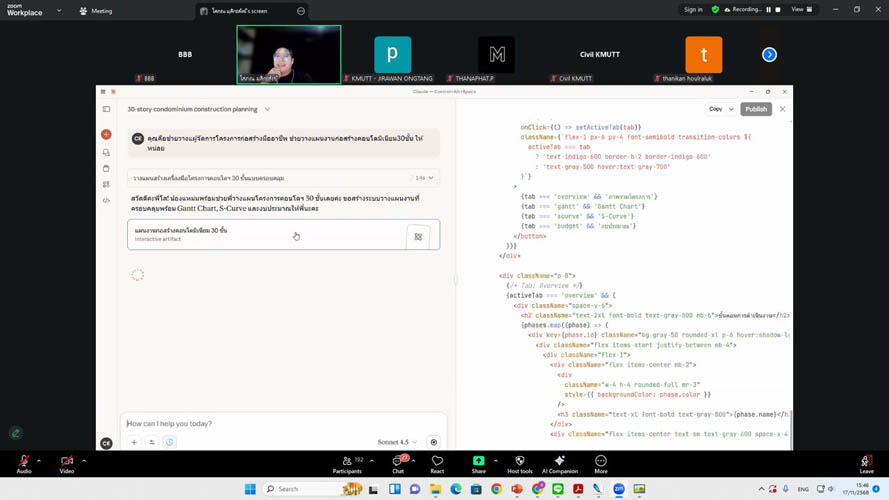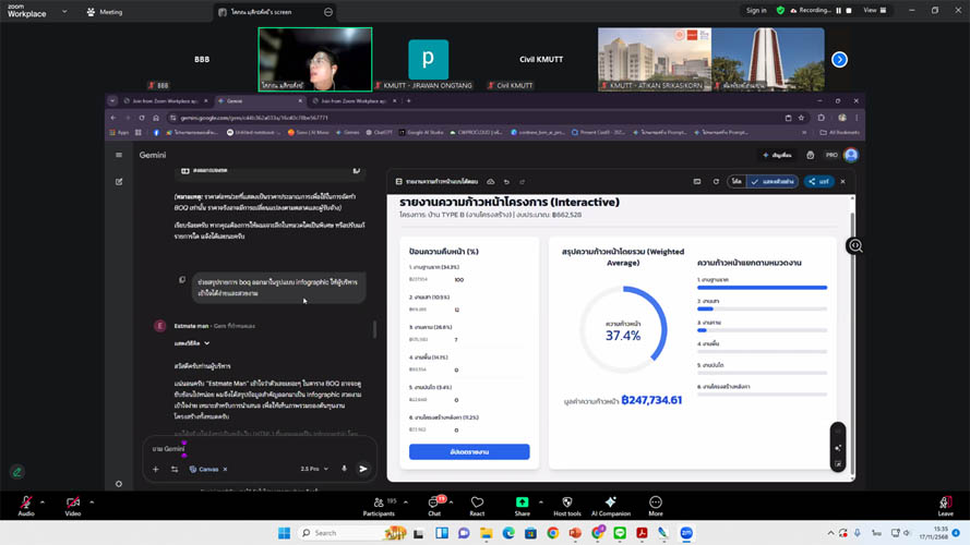 ภาควิชาวิศวกรรมโยธา คณะวิศวกรรมศาสตร์ มจธ. ร่วมกับ มูลนิธิเพื่อการพัฒนา มจธ. ได้จัดโครงการอบรม ครั้งที่ 24 ในหัวข้อ “การเพิ่มประสิทธิภาพงานก่อสร้างด้วย Generative AI: เทคนิคการใช้ CHATGPT, GEMINI, CLAUDE แบบมืออาชีพ” วันจันทร์ที่ 17 พฤศจิกายน 2568 ในรูปแบบออนไลน์ผ่านโปรแกรม Zoom Meeting การอบรมครั้งนี้จัดขึ้นภายใต้โครงการพัฒนาทักษะด้านวิศวกรรมโยธา (Reskill – Upskill – New skill) โดยมีวัตถุประสงค์เพื่อถ่ายทอดองค์ความรู้สู่สังคม และเตรียมความพร้อมบุคลากรในวงการก่อสร้างให้ก้าวสู่ยุค Smart Construction ผ่านการประยุกต์ใช้เทคโนโลยีปัญญาประดิษฐ์ (AI) โดยวิทยากรผู้ทรงคุณวุฒิ คุณโสภณ มุสิกะสังข์ กรรมการผู้จัดการ บริษัทคอสท์ไนน์ จำกัด และ บริษัท CS SYNERGY จำกัด ซึ่งได้ถ่ายทอดเทคนิคและกลยุทธ์การใช้เครื่องมือ Generative AI ชั้นนำอย่าง CHATGPT, GEMINI และ CLAUDE เพื่องานก่อสร้างอย่างมืออาชีพ โครงการนี้ได้รับการตอบรับเป็นอย่างดี โดยมีผู้เข้าร่วมอบรมหลากหลายกลุ่ม ทั้งวิศวกร สถาปนิก ผู้ควบคุมงาน นักศึกษา และผู้ที่เกี่ยวข้องในโครงการก่อสร้าง เข้าร่วมรับฟังผ่านระบบออนไลน์ จำนวน 230 คน ทั้งนี้ ผู้เข้าอบรมที่มีเลขที่สมาชิกสภาวิศวกร และเข้าร่วมการอบรมตลอดจนทำแบบทดสอบประเมินความรู้ จะได้รับจำนวนหน่วยความรู้ (PDU) เพื่อการพัฒนาวิชาชีพวิศวกรรมอย่างต่อเนื่อง (CPD) จากสภาวิศวกรอีกด้วย