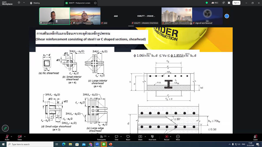ภาควิชาวิศวกรรมโยธา คณะวิศวกรรมศาสตร์ มจธ. ร่วมกับ มูลนิธิเพื่อการพัฒนา มจธ. จัดโครงการอบรมครั้งที่ 28 ในหัวข้อ “ทฤษฎีการออกแบบและการควบคุมการก่อสร้างงานระบบ Post-tensioned Slab” เมื่อวันอังคารที่ 31 มีนาคม 2569 ในรูปแบบออนไลน์ผ่านระบบ Zoom Meetingโดยมีผู้เข้าร่วมอบรมจำนวน 225 คน โดยได้รับเกียรติจาก คุณภาคภูมิ วานิชกมลนันท์ กรรมการผู้จัดการ บริษัท เอสเอ็นพี โพส เท็นชั่น จำกัด มาเป็นวิทยากรผู้เชี่ยวชาญ ถ่ายทอดองค์ความรู้ทั้งในเชิงทฤษฎีและการประยุกต์ใช้งานจริง ครอบคลุมตั้งแต่การออกแบบ การคำนวณแรงตึง ตลอดจนการควบคุมงานก่อสร้างระบบ Post-tensioned Slab การจัดอบรมในครั้งนี้เป็นส่วนหนึ่งของโครงการพัฒนาทักษะด้านวิศวกรรมโยธา (Reskill – Upskill – New Skill) ซึ่งมุ่งเน้นการสร้างสังคมแห่งการเรียนรู้ (Knowledge Community) และส่งเสริมการพัฒนาวิชาชีพอย่างต่อเนื่อง โดยผู้เข้าร่วมอบรมยังสามารถรับหน่วยความรู้ (PDU) ตามเกณฑ์ของสภาวิศวกรอีกด้วยทั้งนี้ โครงการดังกล่าวได้รับความสนใจเป็นอย่างมาก และสะท้อนถึงความตื่นตัวของบุคลากรในสายงานวิศวกรรมโยธาที่มุ่งพัฒนาความรู้และทักษะ เพื่อยกระดับมาตรฐานงานก่อสร้างของประเทศต่อไป