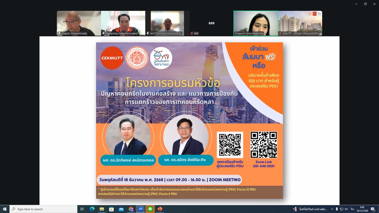 ภาควิชาวิศวกรรมโยธา คณะวิศวกรรมศาสตร์ มหาวิทยาลัยเทคโนโลยีพระจอมเกล้าธนบุรี (มจธ.) ขอแสดงความยินดีอย่างยิ่งกับ ผู้ช่วยศาสตราจารย์ ดร.ชาญชัย เพชรพงศ์พันธุ์ หัวหน้าสาขาวิชาวิศวกรรมทรัพยากรน้ำ และอาจารย์ประจำภาควิชาวิศวกรรมโยธา [...]